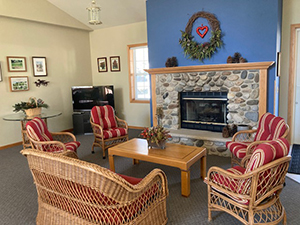 The Steeplechase Clubhouse is a great place for residents to host gatherings such as a family reunion, graduation party, wedding reception, or a bridal shower. Our Clubhouse has a friendly social area on the first floor complete with kitchen appliances, serving counter and utensils. There is also a gas fireplace, dim-able lighting, TV and comfy chairs and couches.